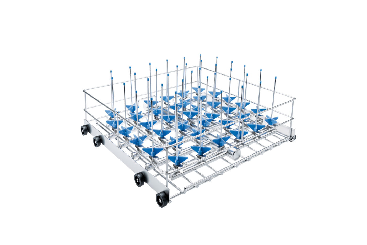 Image shows a loading example for the APLW 095 with nozzle set APLW 052/1. - Vertical clearance with upper basket: 150–165 mm