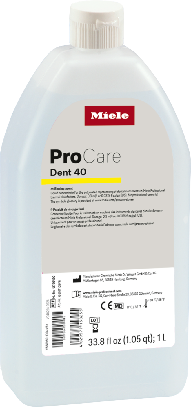 Rinse aid, 1 l for the automatic reprocessing of dental and transmission instruments.