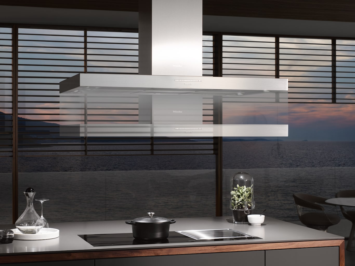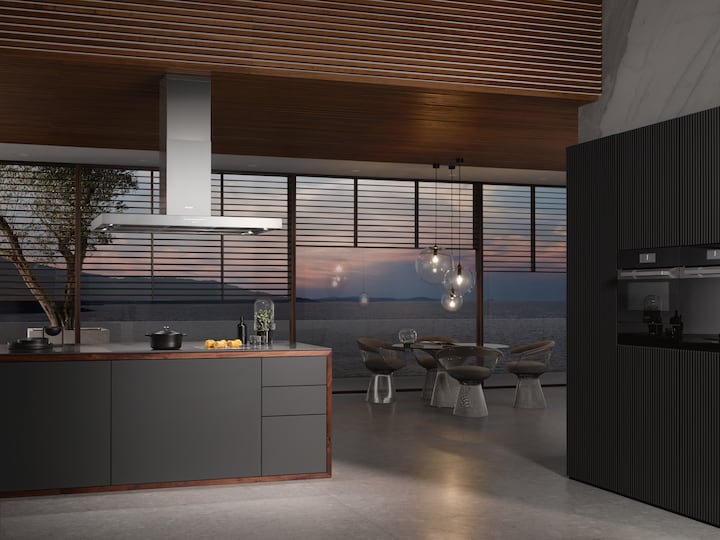 Innovative convenience: the ventilation hood reacts automatically to settings on the cooktop.