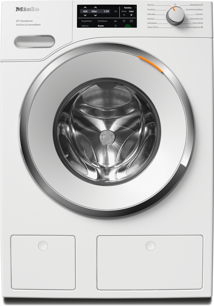 - 4.During the development phase of the W1/W2 washing machine series, Miele tested models and core components in 5,000 wash loads (= 5 wash loads per week for 50 weeks per year) in various programs. More: miele.com/20years