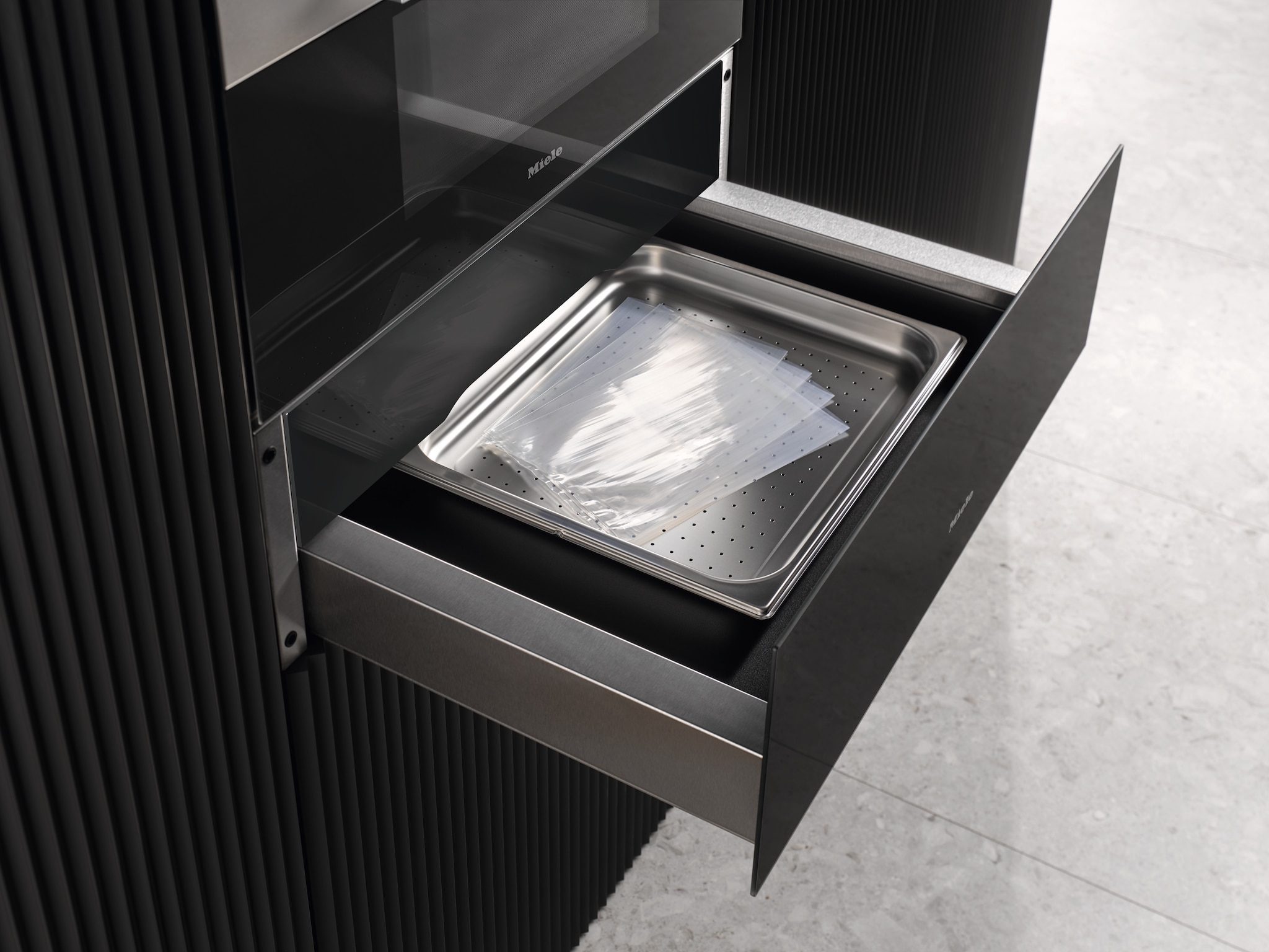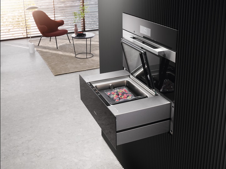With our vacuum-sealing drawer, you can divide food into portions, prepare it for storage, and much more.
