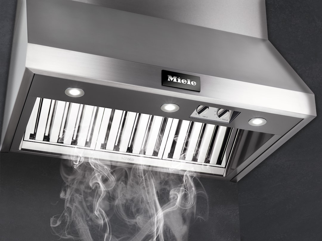 Beautiful and functional: Metal rotary controls complement the harmonious design of the range hoods.