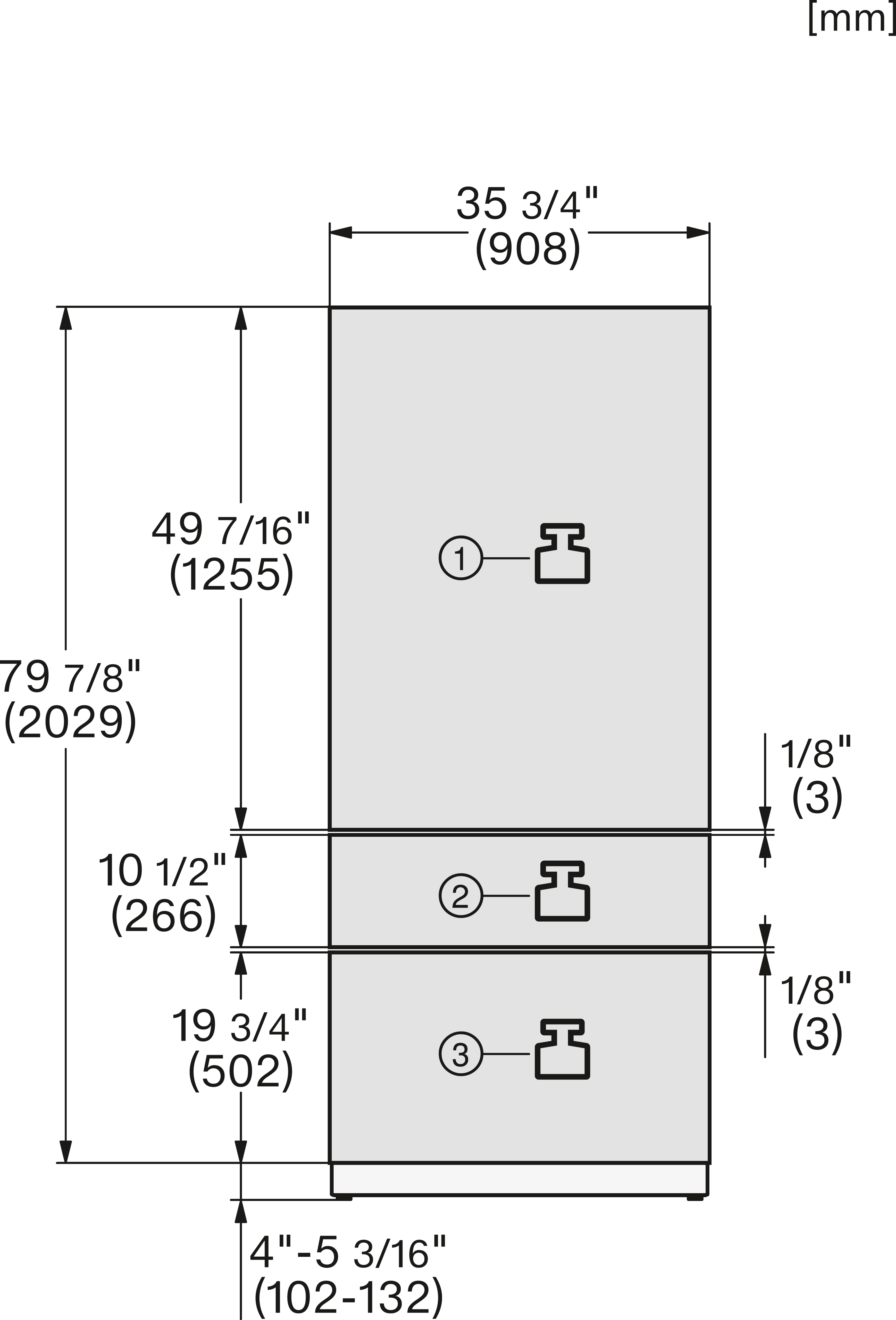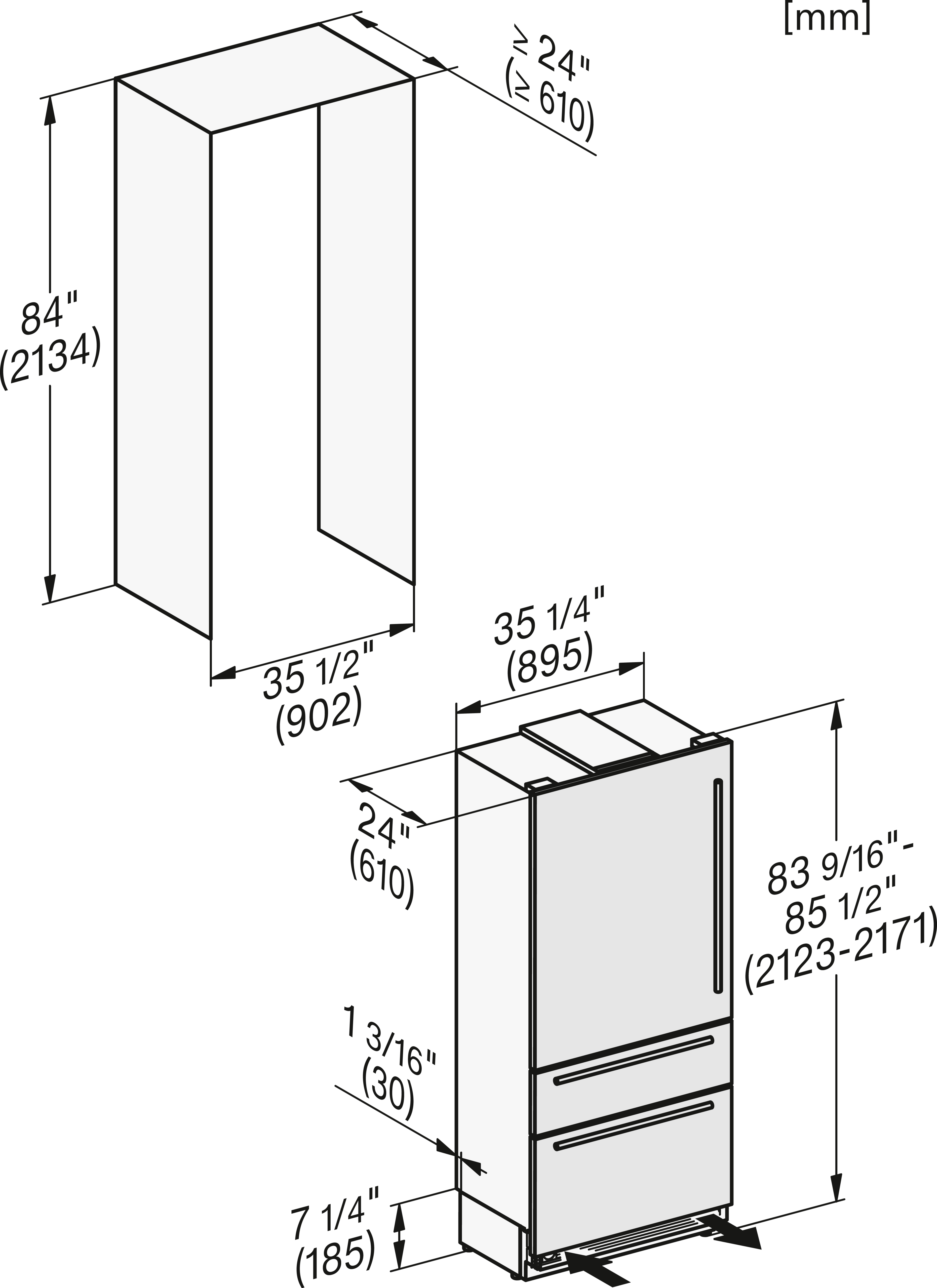 Niche height in inches (mm), max. 84 1/8 (2134)
