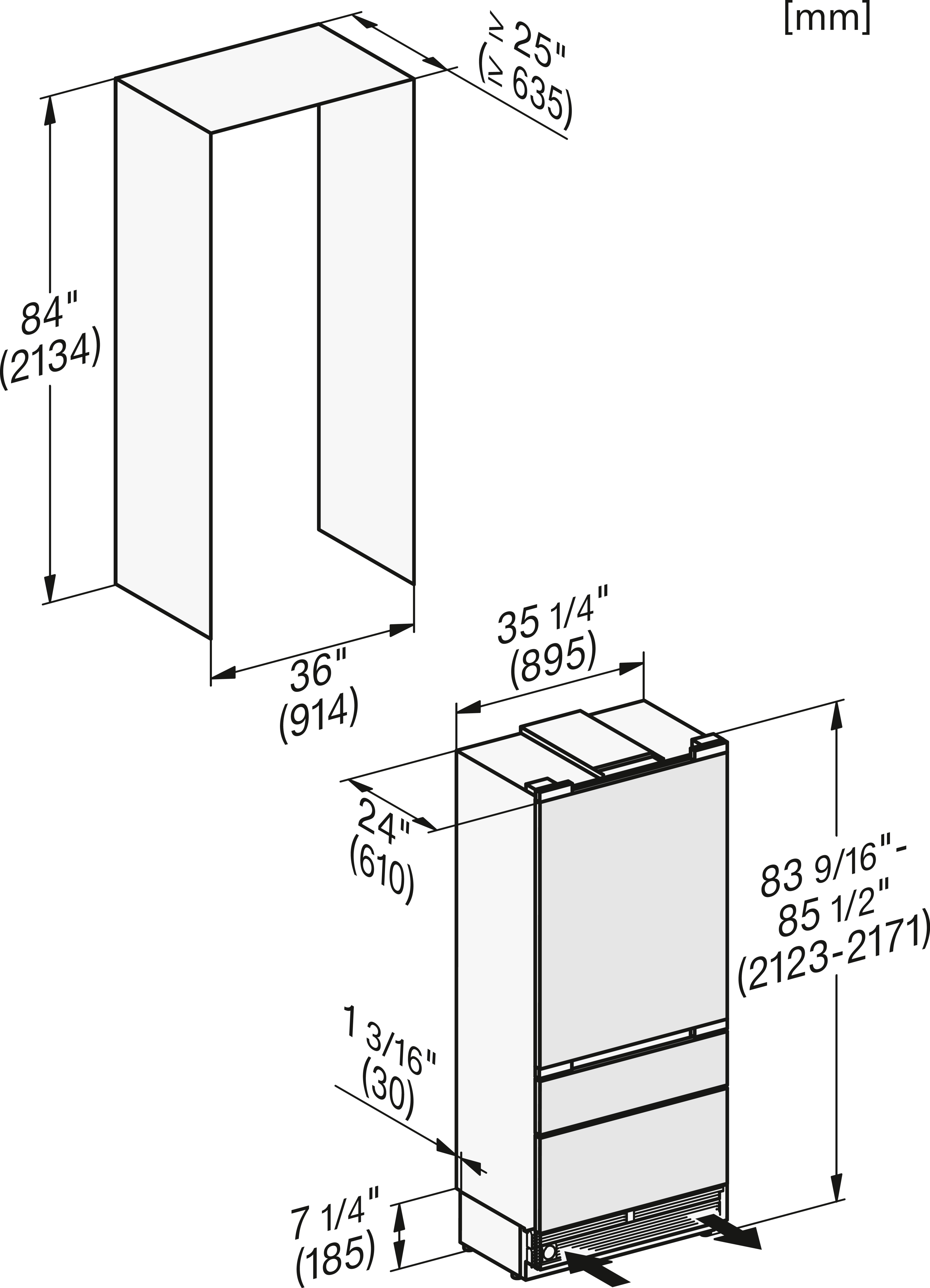 KFMC3632R+L, KFMC3642R+L, KFMC3836R+L, KFMC3834R+L, KFMC3858FD, MasterCool III, Side-view bottom, installation