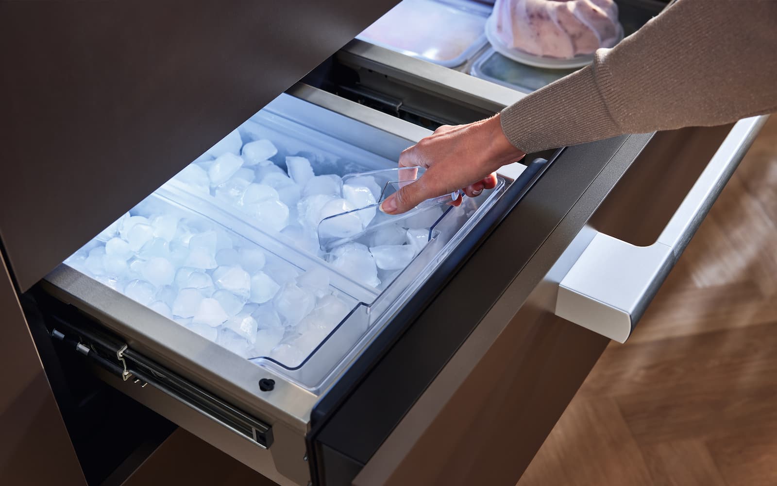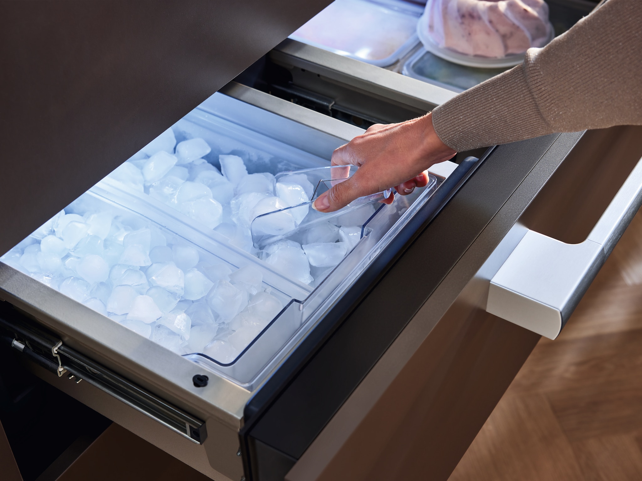 The Dual IceMaker can be used to make small ice cubes for quick cooling or large ones for longer cooling.
