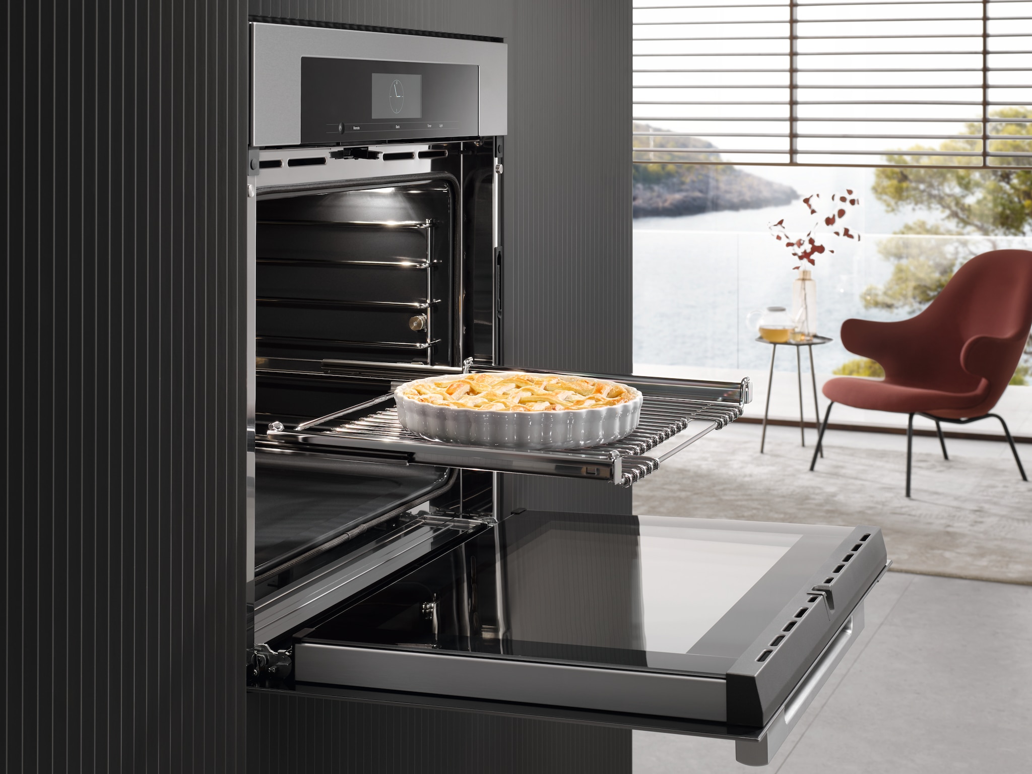 Telescopic runners allow baking trays, racks or Gourmet oven dishes to be pulled clear of the cooking compartment.