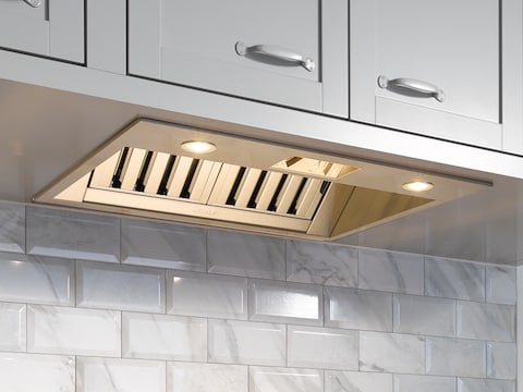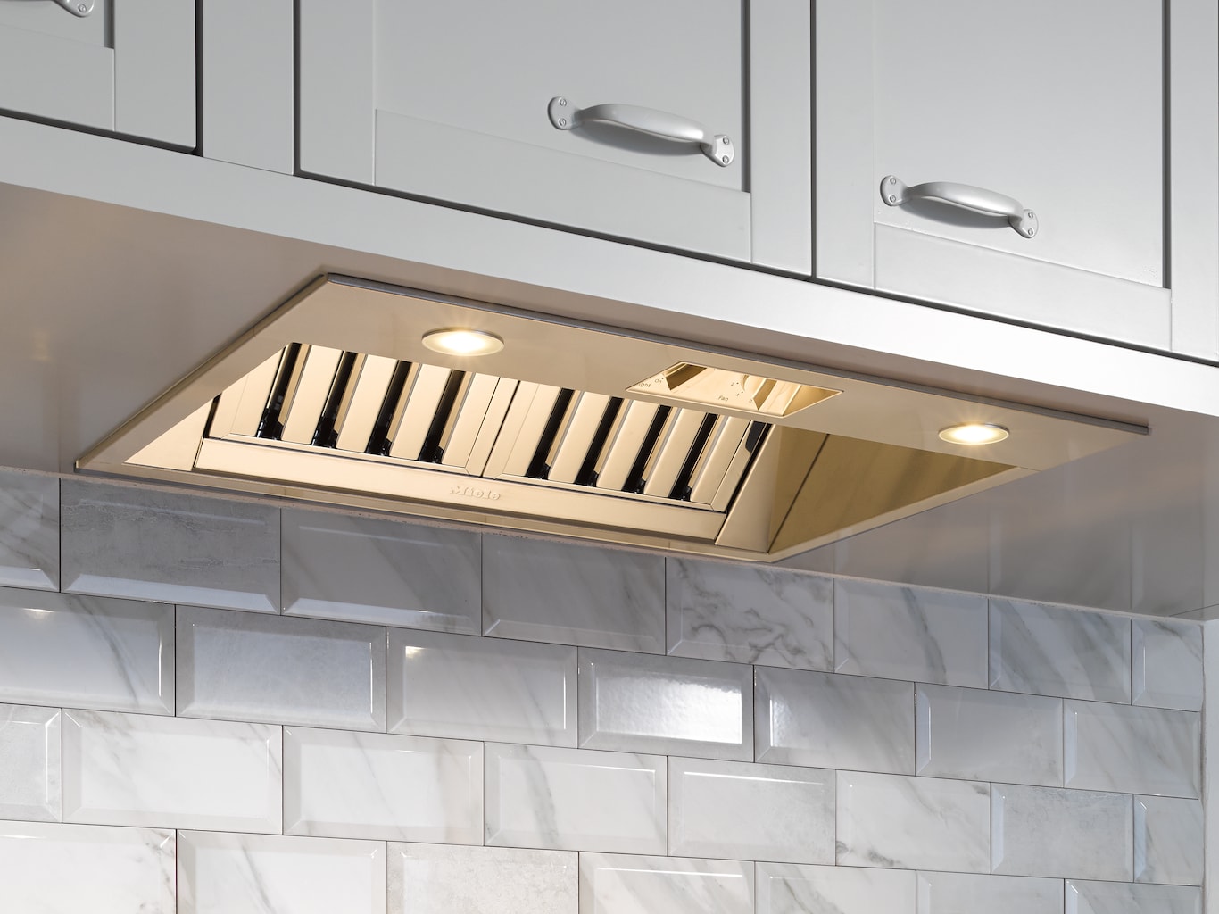 Beautiful and functional: Metal rotary controls complement the harmonious design of the range hoods.